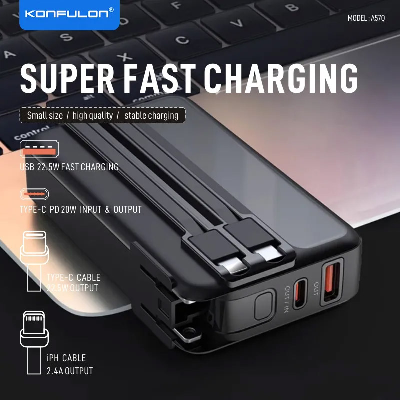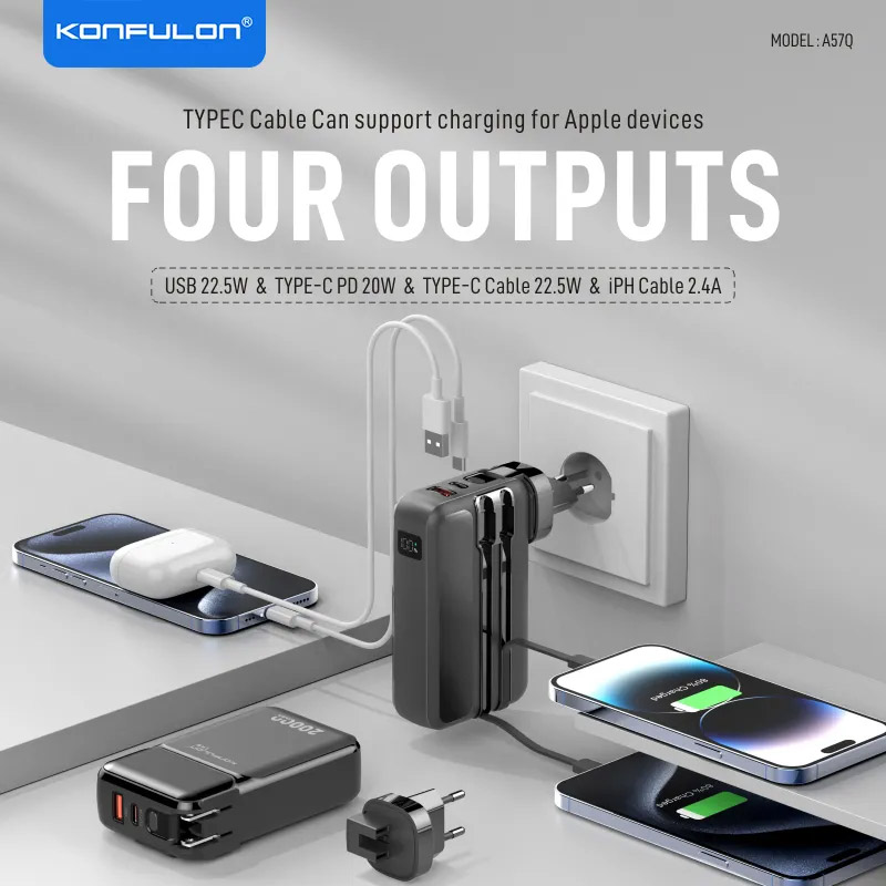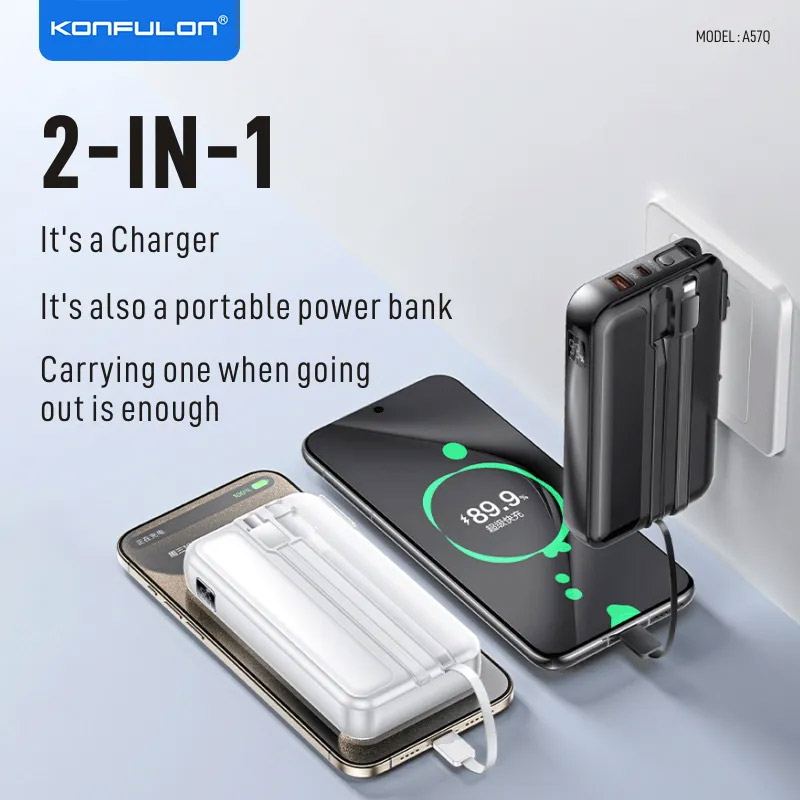 A57Q je višenamenski Power Bank sa ugrađenim kablovima i PD brzim punjenjem – 20.000 mAh